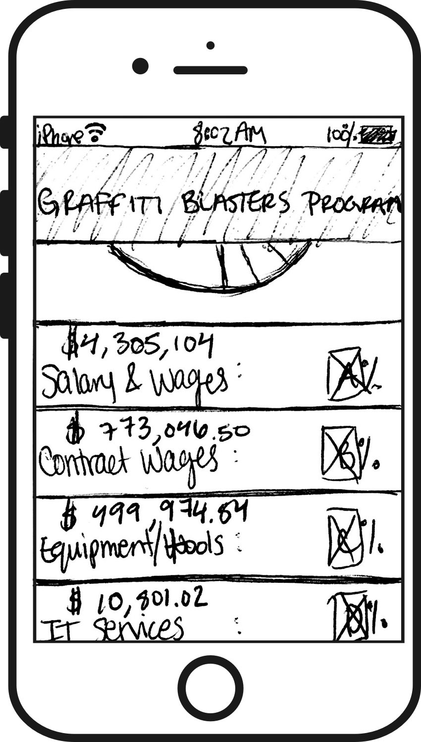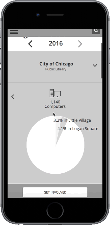 This prototype first gave the city’s annual budget and required a neighborhood zip code to access all other information. As a restricted flow, users found it easy to navigate. It divided the neighborhood’s annual budget by topics, departments, and programs using both pie and bar charts. On the program’s page, users responded to the number of work orders completed, which was tangible to them.