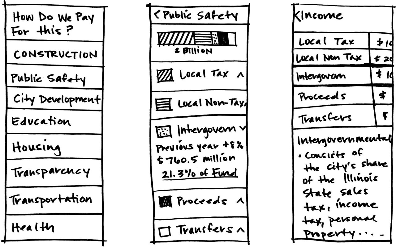 Our concepts tested different organizations and paths to drill down into parts of the budget.